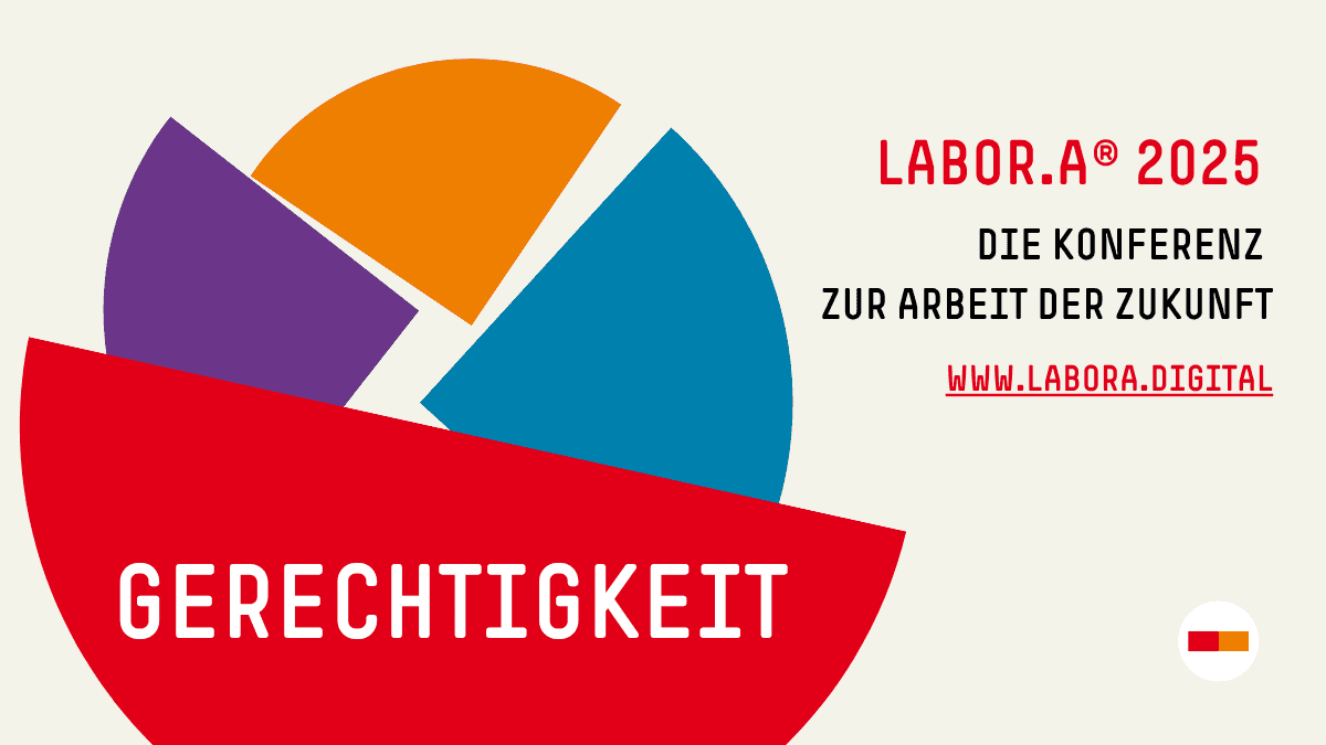 Die LABOR.A® 2025 fokussiert auf „Gerechtigkeit“ als zentralem Wert zukünftiger Arbeitswelten. Eine gerechte Gesellschaft braucht demokratische Aushandlung – gerechte Arbeitswelten fußen auf Mitbestimmungsprozessen. Im Zentrum einer gerechten Gesellschaft steht die faire Gestaltung von Arbeit. Für alle. Dafür lohnt es sich zu streiten.